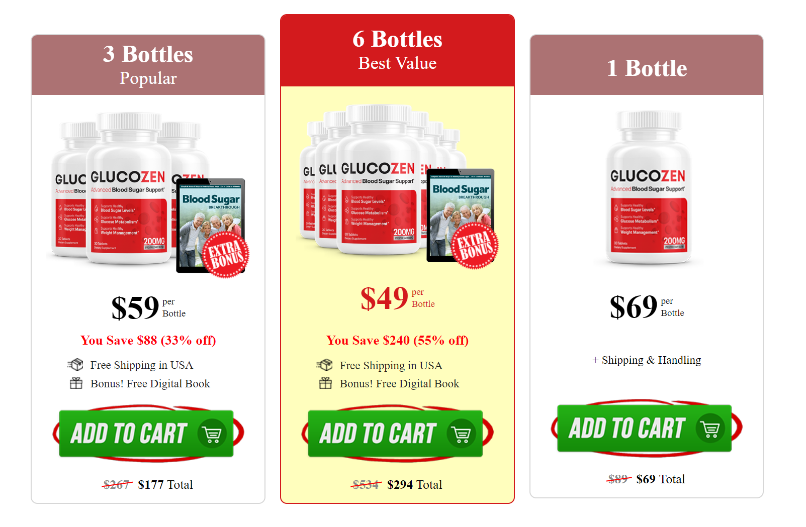 Glucozen dietary supplement is available in 3 pricing packages, ensuring you get a package that suits your needs and budget. These packages include: